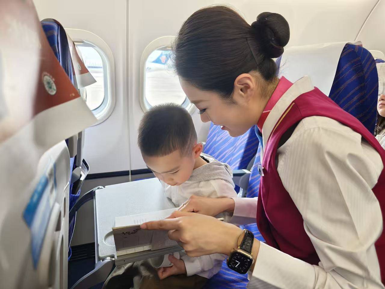 在飞机上看书并不是一件新鲜事。对不少旅客而言,飞行的几个小时,恰恰是一天中难得能静下心来的时段:手机没有信号,外界干扰少了,工作和生活的节奏也暂时慢了下来,一本书往往能让旅途少一点疲惫、多一点从容。尤其对亲子家庭来说,飞行中的共读时光,也能让旅程多一分温馨。