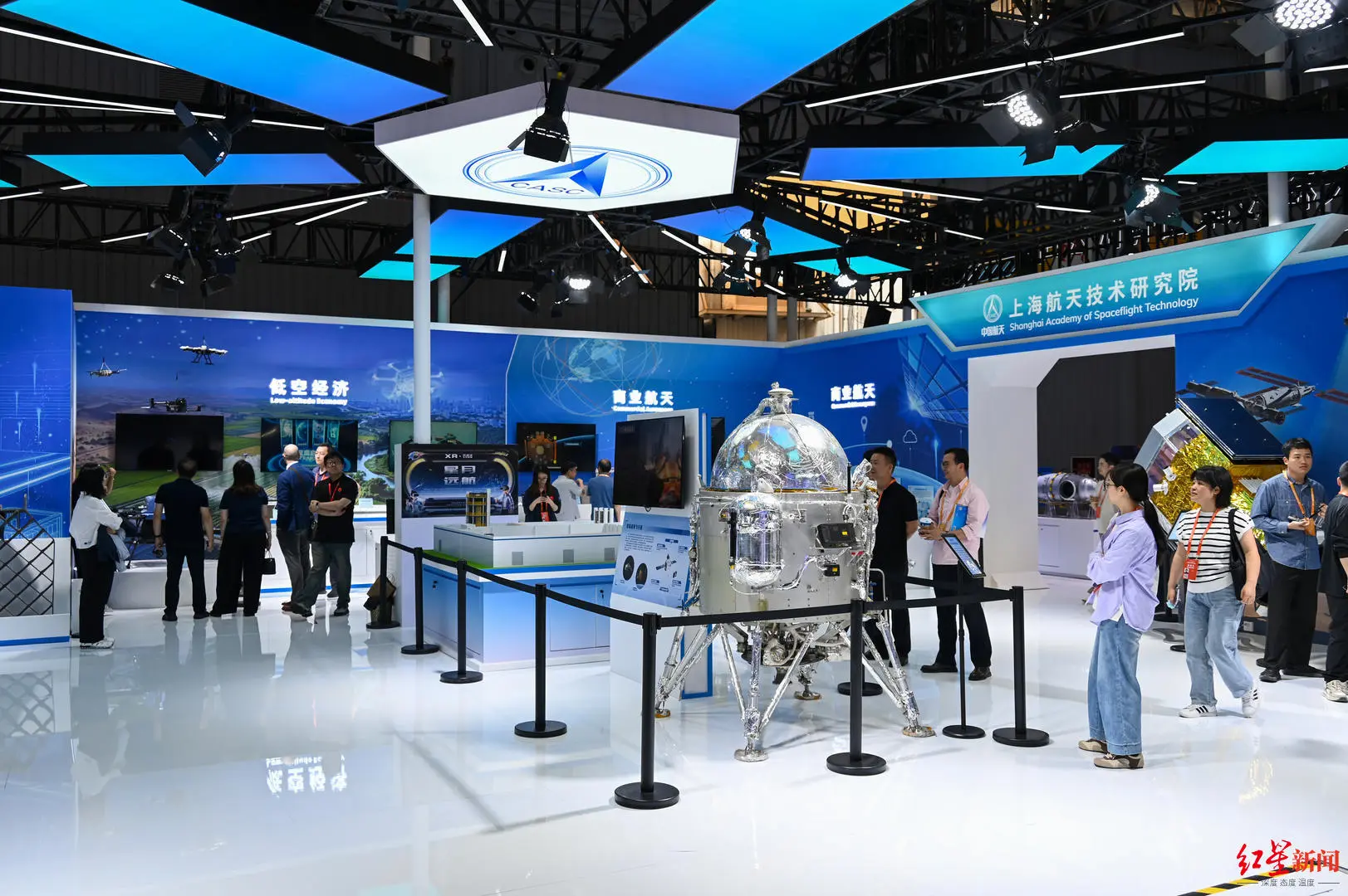 红星新闻记者在配套的科普展示现场看到,航天产业链上各个环节都在“更进一步”:有给卫星售卖零部件的“太空工厂”,有负责运输的“太空快递”,还有为解决卫星拥挤而设计的“太空导航”……处处体现着这一产业的蓬勃发展。