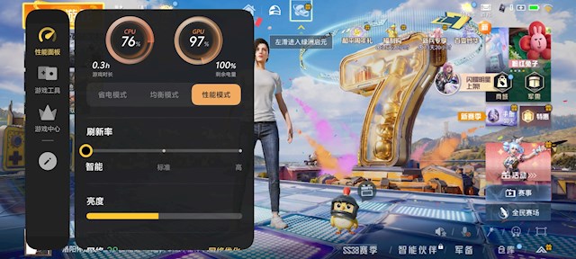 在游戏中,我们可以点击左侧的游戏魔盒,将游戏设置为性能模式,画质选择超高,释放全部性能。