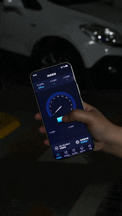 我们实测进入地下车库后,用测速软件进行测试,ping时延41ms,下行295.31Mbps,上行12.63Mbps,没有出现加载转圈、断网掉线的情况,信号稳定性远超普通手机。对于经常跑外勤、出入地下空间的用户来说,再也不用怕弱网耽误事。