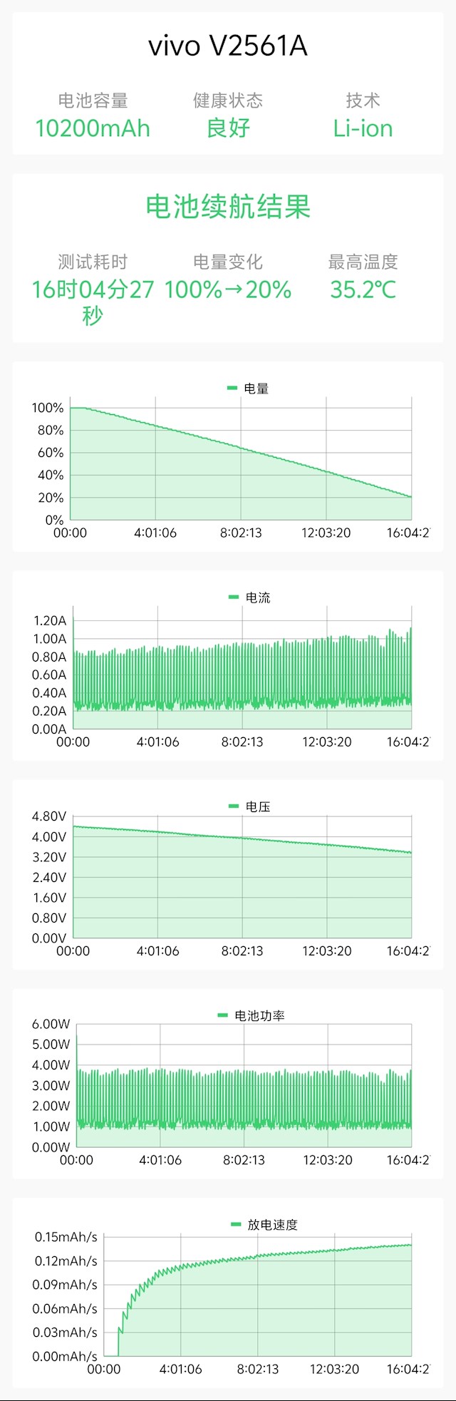 实测结果显示,vivo Y600 Pro从100%电量用到20%,耗时16小时4分钟。折算满电续航约20小时5分钟,重度使用一天毫无压力。