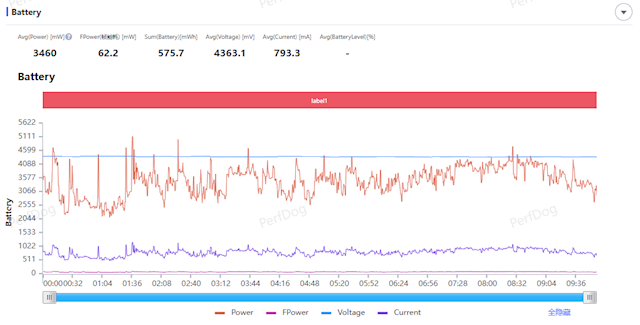 游戏中平均功耗为3.46W,每帧能耗为62.2mW。