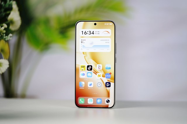 正面是一块6.83英寸1.5K直屏,居中单挖孔,边框宽度仅1.35mm,四边等宽,视觉体验舒适。
